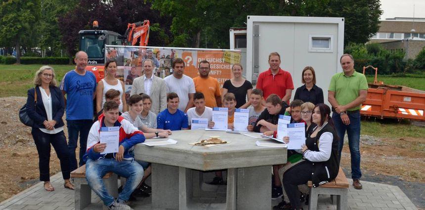 Vom mehrmaligen Ausmessen, Grabungsarbeiten mit dem Bagger, Kiesauffüllung bis zum Einsetzen der Tischplatte war einiges zu tun. „Es hat uns allen sehr viel Spaß gemacht“, sagt Marcel Hilbert aus der achten Klasse. Manchmal habe es etwas Leerlauf für ein paar Schüler gegeben, aber insgesamt sei alles „super“ verlaufen. „Baumaschinenmechaniker“ sei ein Beruf, den er spannend fände. Roxana Pop hatte vor allem Spaß am technischen Zeichnen.